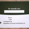 Mocht je een cadeaukaart om maat (specifiek bedrag) willen hebben kunnen we die op maat maken. Elke cadeaukaart kan per post verstuurd worden.